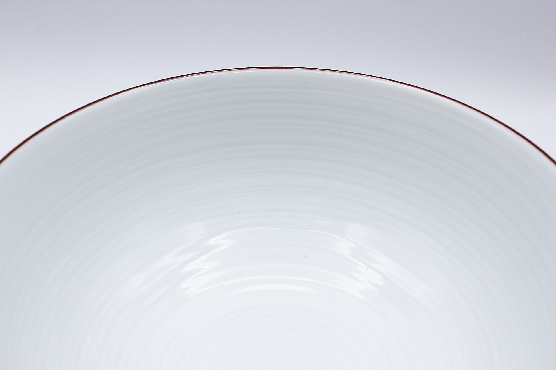 幾重にも施された千段彫はひとつひとつ職人の手によるもの。磁器の美しさと手彫の風合いが同時に楽しめます。縁錆がアクセントになっているのも素敵ですね。