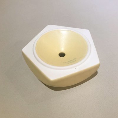 蓋の裏側が ろうと状 になっているため、吸い込まれるようにスプーンが中央に収まり、片手でも簡単に蓋をすることができます。実はこの蓋の構造がとても手間のかかる作業のため、メーカーに生産の委託を断られてしまったことも。そのため岡崎さんがひとつひとつ製作しており、スプーンの行き場に困らないスムーズな動作はこのこだわりの構造から生まれています。